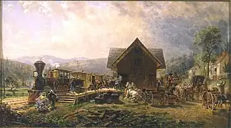 The 9:45 Accommodation is a 19th-century painting by American artist Edward Lamson Henry. Done in oil on canvas, the work depicts a train being boarded. Several notable versions of the painting have been produced, the first being an 1864 painting on wood panel and the second being an 1867 oil on canvas painting. The original 1864 work is in the collection of the Morse Museum of American Art,[1] while the 1867 work is in the collection of the Metropolitan Museum of Art.[2]
