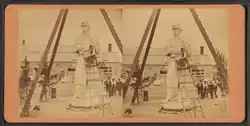 Statue at Westerly, Rhode Island, circa 1876. Note the smaller version, far left.