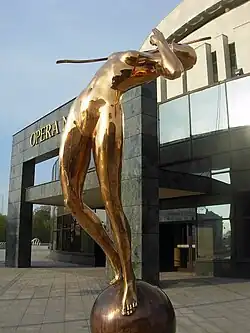 On 19 April 2013, to celebrate the 667th anniversary of the city charter, a new statue, the "Archer Nova" was unveiled, referring to Archer's original figure: it stands on a sphere, with its head slightly inclined, eyes closed, athletic body bent backward. It is visible on the yard facing the main entry of the Opera Nova. The sculpture was created by Maciej Jagodziński-Jagenmeer, from Toruń. It is made of bronze and covered with chromium, weighs 200 kg and is 1.8m tall - five centimeters more than the original Archer.[7]