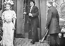 Scene with actors (from left) Florence Lawrence, Charles Inslee, and Harry Solter