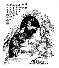 In the epilogue, during the twenty-sixth or twenty-seventh year of the Kangxi Emperor, a Daoist priest claiming to be a disciple of Zhongli Quan enters the cave (a new entrance had been discovered after the collapse of the southern cliff face in Yangmu Valley)[a] to purify it but is impaled on a stalagmite. Thereafter, the magistrate has the cave permanently sealed off.