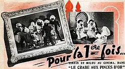 The Crab with the Golden Claws (French: Le crabe aux pinces d'or) is a 1947 Belgian stop motion crime film produced by Wilfried Bouchery for Films Claude Misonne and based on the comic book of the same name from The Adventures of Tintin by Hergé. This was the first Tintin story to be adapted into a movie and follows the story of the comic almost exactly.