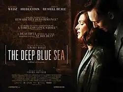 The Deep Blue Sea is a 2011 British romantic drama film written and directed by Terence Davies and starring Rachel Weisz, Tom Hiddleston, and Simon Russell Beale. It is an adaptation of the 1952 Terence Rattigan play The Deep Blue Sea about the wife of a judge who engages in an affair with a former RAF pilot. This film version was funded by the UK Film Council and Film4, produced by Sean O'Connor and Kate Ogborn.