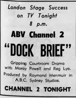 8. ^ ""Dock Brief" Telecast from ABN". Sydney Morning Herald. 28 January 1960. p. 5.