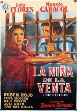The Girl at the Inn (Spanish: La niña de la venta) is a 1951 Spanish musical comedy film directed by Ramón Torrado and starring Lola Flores, Manolo Caracol and Manuel Requena.[1] In Cadiz a small cabaret is used as a cover for smuggling.