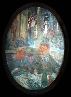 The Grand Teddy tea-rooms paintings is a collective name for three glue distemper oval paintings executed by Édouard Vuillard for Le Grand Teddy tea-rooms in Paris in 1918. The largest is privately owned, but is sometimes exhibited. One of the smaller works (identified in Vuillard's notes as The Cafe) was featured on an episode of the BBC television programme Fake or Fortune? which first broadcast on 19 January 2014.[1] The location of the third (called The Oysters in Vuillard's notes) is currently unknown.