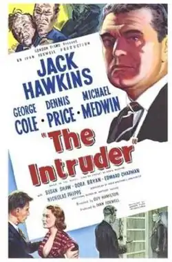 The Intruder is a 1953 British drama film directed by Guy Hamilton and starring Jack Hawkins, George Cole, Dennis Price and Michael Medwin.[2] The screenplay is by Robin Maugham and John Hunter, based on Maugham's 1949 novel Line on Ginger.