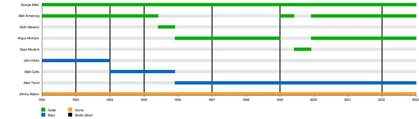 | Past members | George Miller Johnny Maben Matt Armstrong John Gibbs Matt Curtis Mark Ferrie Keith Warwick Angus McIntyre Dean Micetich |