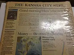 First morning edition of the Kansas City Star on March 1, 1990, that came in a special package including the last edition of the Kansas City Times and the last afternoon edition of the Star