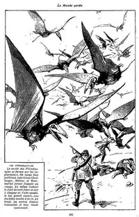 Pterodactyls attack the explorers, illustration from French serial version, 1914