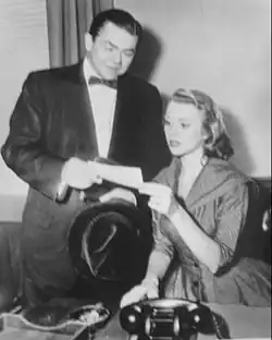 Michael Anthony (Marvin Miller) hands check to Betty Perkins (Inger Stevens) in a 1956 episode | |