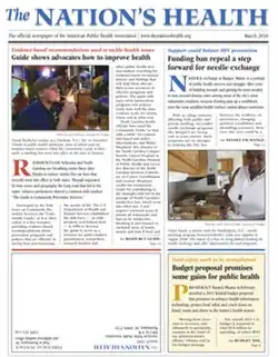 The Nation's Health is the monthly newspaper of the American Public Health Association, a source of news from and for the public health field. The newspaper covers issues of interest to public health professionals, including news on federal, state and local public health policy; developments and trends in public health science and practice; global health issues; research findings; and coverage of state and local health departments.