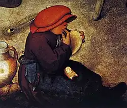 The Peasant Wedding is a 1567 genre painting[1] by the Dutch and Flemish Renaissance painter and printmaker Pieter Bruegel the Elder, one of his many depicting peasant life. It is now in the Kunsthistorisches Museum, Vienna. Pieter Bruegel the Elder enjoyed painting peasants and different aspects of their lives in so many of his paintings that he has been called Peasant-Bruegel, but he was an intellectual, and many of his paintings have a symbolic meaning as well as a moral aspect.[2][3][4]