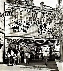 A cinema marquee advertising The Pit and the Pendulum in Chicago, Illinois, in 1961