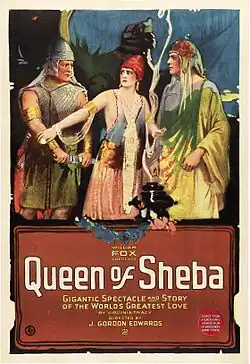 The Queen of Sheba is a 1921 American silent drama film produced by Fox studios about the story of the ill-fated romance between Solomon, King of Israel, and the Queen of Sheba. Written and directed by J. Gordon Edwards, it starred Betty Blythe as the Queen and Fritz Leiber Sr. as King Solomon.[2] The film is well known amongst silent film buffs for the risqué costumes worn by Blythe, as evidenced by several surviving stills taken during the production. Only a short fragment of the film survives.[3]