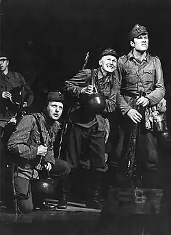 Väinö Linna wrote in his manuscript cover letter to the publisher WSOY that he wanted "to give the soldiers, who bore the weight of the calamity, all the appreciation and strip war of its glory".[9][10] Gritty and realistic, the novel was partly intended to shatter the myth of a noble, obedient Finnish soldier. In Linna's own words, he wanted to give the Finnish soldier a brain, an organ he saw lacking in earlier depictions—such as Johan Runeberg's The Tales of Ensign Stål, where Finnish soldiers are admiringly portrayed with big hearts and little independent intellect.[11] The Unknown Soldier is closely based on Linna's own experiences as a Finnish Army soldier in Infantry Regiment 8 during the Continuation War with many of its scenes derived from factual events, but is more or less fictional.[2][5][12][3][13]