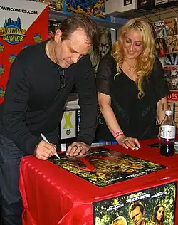 Stars and co-producers Michael Biehn and Jennifer Blanc promoting the film during an August 23, 2012 appearance at Midtown Comics in Manhattan.