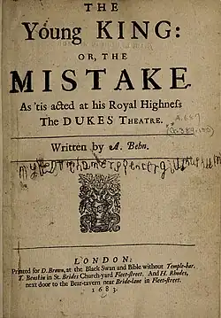 The Young King, or, The Mistake is a tragicomedy written by Aphra Behn. It was probably written during the 1660s (making it Behn's first play), but was not staged until 1679.[1] It explores notions of kingship and divine right, and gender and heroism.