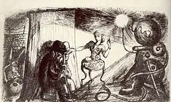 Karl Rahm insisted that the "prominent" prisoners of Theresienstadt be filmed, and pressed Gerron to include more of them in his shots.[20] Among the "prominents" who appeared were Jo Spier, Max Friediger, Paul Eppstein, and Leo Baeck.[24] The SS also insisted that the film's soundtrack consist exclusively of Jewish composers.[29][c] According to España, the film itself is of good technical quality,[25] and the focus on leisure activities creates an "atmosphere of a perpetual party".[d] Margry states that the narration was "the main truth-distorting element", but nevertheless included some factual information.[23] According to Margry, historians have exaggerated the falseness of the film. Although Theresienstadt as a whole is "a vicious work of propaganda", "the visual authenticity" of the film is greater than many commentators have written, and the film accurately depicts some elements of daily life in the ghetto.[23] Margry argues that "the film's blatant dishonesty turns on what it did not show: the hunger, the misery, the overcrowding, the slave work for the German war economy, the high death rate, and, most of all, the transports leaving for the East".[23]