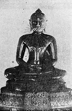 King Taksin's ultimate goal was not only being king but also attaining Buddhahood,[59] which mindfulness and meditations were the way to achieve. In late 1776, King Taksin began to actively pursue esoteric Borān Kammaṭṭhāna[60] meditational practices. He seriously studied meditation methods with the monk Phra Wannarat Thongyu[60] at Wat Hong Rattanaram. King Taksin even composed his own meditation manual in 1775.[60] He sent monks to Ligor and Cambodia in search for Visuddhimagga treatise on meditation. In 1777, King Taksin declared that he had become a sotapanna the 'stream-enterer' who had entered the first of four-stage path to Buddhahood.[10] In 1778, Taksin ordered the recompliation of Traiphum[61] – Buddhist literature on cosmology. Upholding Buddhism had been considered royal duties but Taksin went beyond being Buddhist patron by taking the role of teacher and leader of the Sangha[10] and personally practising the Kammaṭṭhāna. In 1780, King Taksin commanded that the monks should perform wai gesture to pay respect to him and lay prostrate[62] before him. Taksin's new stance reversed the usual relationship between monk and king[10] and caused schism[62] in the Sangha between those who complied with the king's rhetoric and those who rejected. Sangharaja Si insisted that monks were always superior to laymen. The angered king stripped Venerable Si of his Sangharaja position and made the monk Chuen of Wat Hong, who supported Taksin's assertion, the new Sangharaja instead. Five hundred monks who refused to obey royal orders were beaten as punishment.[10][62] Si and other monks were condemned to menial works in Wat Hong, serving the new patriarch.[62] When Taksin fell from power in 1782, King Rama I restored Venerable Si to his position as Sangharaja, praising him for undeterred adherence to orthodoxy.