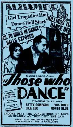 Those Who Dance is a 1930 American Pre-Code crime film produced and distributed by Warner Bros., directed by William Beaudine, and starring Monte Blue, Lila Lee, William "Stage" Boyd and Betty Compson. It is a remake of the 1924 silent film Those Who Dance starring Bessie Love and Blanche Sweet.[1] The story, written by George Kibbe Turner, was based on events that occurred among gangsters in Chicago.