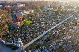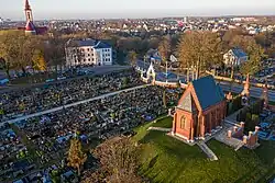 The Chapel and Mausoleum of the Tiškevičius Family (Lithuanian: Grafų Tiškevičių šeimos koplyčia-mauzoliejus), along with the fence the eastern and western gates of the graveyard, rests in the site of the Old Graveyard of Kretinga Parish and forms a single complex. It is a state-protected cultural heritage object of regional significance.