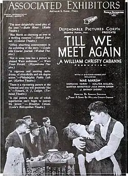 Till We Meet Again is a 1922 American silent melodrama film directed by Christy Cabanne and starring Julia Swayne Gordon, Mae Marsh, and J. Barney Sherry. It was released on October 15, 1922.[2]