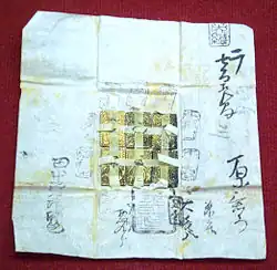 Regarding copper coins, the Kan'ei Tsūhō coin (Kyūjitai: 寛永通寶 ; Shinjitai: 寛永通宝) came to replace the Chinese coins that had been in circulation in Japan, as well as those that were minted privately, and became the legal tender.[8] This put an end to more than four centuries during which Chinese copper coins, obtained through trade or Wakō piracy, had been the main currency of Japan.[8]