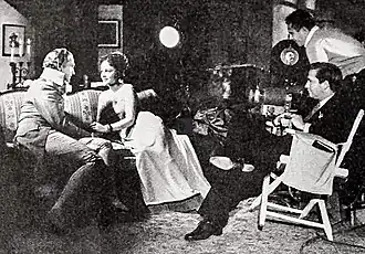 This directorial streak did not last for long, as Gaudio returned Metro as a cinematographer in 1926 with The Temptress, a Greta Garbo feature in which Tony lost the little finger of his left hand when he fell on the set.[3] Tony continued to work with First National for The Blonde Saint, The Notorious Lady and An Affair of the Follies, in addition to photographing The Gaucho for Fairbanks. Also with First National was Two Arabian Knights and The Racket, both directed by Lewis Milestone, for businessman and producer Howard Hughes in collaboration with United Artists. The Gaucho featured one of the earliest two-strip Technicolor sequences.[8] Gaudio also shot two-strip Technicolor scenes for On with the Show! (1929) and General Crack (1929) for Warner Bros.[8] On with the Show! was the first all-talking, all-color feature. When First National was acquired by Warner Bros. in 1928, Gaudio moved over to the new studio, signing a long-term contract with Warners in 1930.[7]