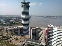 Torre The Point is an office skyscraper in Guayaquil, Ecuador. Built between 2011 and 2014, the tower stands at 136.5 m (448 ft) tall with 36 floors and is currently the tallest building in Ecuador, but it will be surpassed by Maxximus Guayaquil or YOO Guayaquil if the construction is completed. It is also part of the Ciudad del Río complex. Ecuadorian architect Christian Wiese was in charge of the construction of the tower, while Sergio Torassa, the executive president of Pronobis, was in charge of financing for the project.[2]
