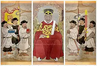 Trần Hưng Đạo (Vietnamese: [ʈə̂n hɨŋ ɗâːwˀ]; 1228–1300), real name Trần Quốc Tuấn (陳國峻), also known as Grand Prince Hưng Đạo (Hưng Đạo Đại Vương – 興道大王), was a Vietnamese royal prince, statesman and military commander of Đại Việt military forces during the Trần dynasty. After his death, he was considered a saint and deified by the people and named Đức Thánh Trần (德聖陳) or Cửu Thiên Vũ Đế (九天武帝).[1][2] Hưng Đạo commanded the Vietnamese armies that repelled two out of three major Mongol invasions in the late 13th century.[3] His multiple victories over the Yuan dynasty under Kublai Khan are considered among the greatest military feats in Vietnamese history.