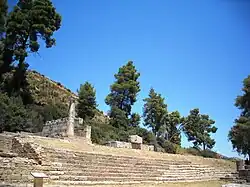 The Treasuries were built on a natural terrace at the foot of the Hill of Cronus. The best preserved and earliest treasury is that dedicated by Sicyon. The most recent treasury discovered is that of Syracuse. It was built to celebrate the victory over Carthage in 480 BC.