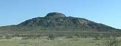 In 1901, the Chicago, Rock Island and Pacific Railroad built a construction camp in the western portion of modern-day Quay County. Originally called Ragtown, the camp became known as "Six Shooter Siding", due to numerous gunfights. Its first formal name, Douglas, was used only for a short time.[9] After it grew into a permanent settlement, it was renamed Tucumcari in 1908. The name was taken from Tucumcari Mountain, which is situated near the community.[10] The origin of the mountain's name is uncertain; it may have been derived from the Comanche word tʉkamʉkarʉ, which means "ambush".[11] A 1777 burial record mentions a Comanche woman and her child captured in a battle at Cuchuncari, which is believed to be an early version of the name Tucumcari.[9][12] A folk etymology for the town name claims that a Comanche saw a brakeman carrying a lantern and exclaimed "tukaʔ manoori!, carry the light!", which the brakeman heard as "tukama carry".[13]