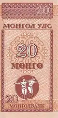 20 möngö | 45 × 90 mm | Yellow-brown | Soyombo, Wrestling | Wrestling | |||