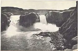 Before the dam, very high flow rates could result in a smaller third falls, to the south.[3]