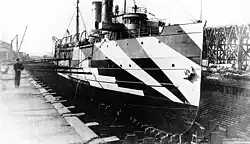 The United States Navy purchased SS City of South Haven on 19 April 1918 at Manistee, Michigan. She was converted for naval service at Kraft Shipyard and Dry Dock Company of Chicago, Illinois.[3] USS City of South Haven was commissioned on 9 November 1918, two days before the Armistice that ended World War I. Commanded by Lieutenant Commander A. C. Wilvers of the United States Naval Reserve Force, she left Chicago on 29 November and arrived in Boston, Massachusetts on 13 December,[2][3] where she was to be fitted and sent to Europe for cross-channel transport. However, with the end of hostilities the ship, no longer needed, was placed on the sale list,[3] sold to the Goodrich Transit Company of Chicago, struck from the Navy List on 27 September 1919, decommissioned on 3 December, and delivered to her new owners.[1]