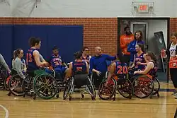 The Lady Movin' Mavs were initially a sports club at UTA and transitioned to full intercollegiate team status once sufficient funds had been raised.[7] It plays under the auspices of the National Wheelchair Basketball Association (NWBA), which organizes intercollegiate wheelchair basketball tournaments across the United States. During the 2014–15 season, the team's roster grew from five to nine players, which allowed the team greater flexibility with strategy and opportunities to rest players.[8] That season, the team played in the National Intercollegiate Wheelchair Basketball Tournament (NIWBT), where it lost to the University of Illinois in its first game and then lost to the University of Wisconsin–Whitewater in the third-place game.[9]