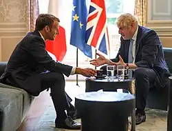 Johnson and Macron meet during Brexit negotiations, 2019.
