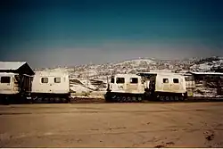 UN Bv206 light tracked "softskin" (unarmoured) vehicles in Sarajevo.