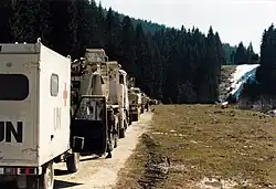 UNPROFOR Dutch transport battalion en route in Bosnia-Herzegovina. Route Triangel April 1995