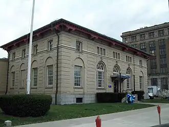 US Post Office—Olean is a historic post office building located at Olean in Cattaraugus County, New York. It was designed and built in 1910-12 and is one of a number of post offices in New York State designed by the Office of the Supervising Architect of the Treasury Department, James Knox Taylor. It is a two-story masonry and steel frame building. Its Renaissance Revival design complements the adjacent Olean Public Library.[2]