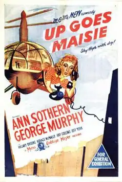 Up Goes Maisie is a 1946 American comedy film directed by Harry Beaumont. Produced by Metro-Goldwyn-Mayer, it is the ninth of 10 films starring Ann Sothern as ex-showgirl Maisie Ravier, characterized as "that double trouble doll with the sassy chassis".[1] In this series entry, Maisie, "the peppery lady with a golden heart" goes to work for an inventor and helicopter operator played by George Murphy.[2]