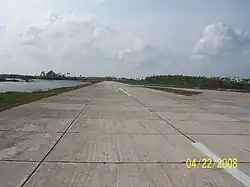 The runway bridges two of the several islands comprised by the town. It is 1 kilometre (0.6 mi) northwest of the main populated islands. Approach and departure at either end of the runway will be over the water.