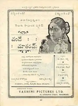 2. ^ "వందేమాతరం-తెలుగులో తొలితరం సాంఘిక చిత్రం". Navatarangam (in Telugu). Archived from the original on 16 March 2015.