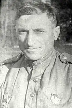 Vasil Shalvas dze Kvachantiradze (Georgian: ვასილ შალვას ძე კვაჭანტირაძე; Russian: Василий Шалвович Квачантирадзе, romanizedVasily Shalvovich Kvachantiradze; 15 January [O.S. 2 January] 1907 – 9 February 1950) was a Soviet sniper during World War II. He is credited with confirmed kills numbering at least 215 officers and soldiers of the German Wehrmacht during the Vitebsk–Orsha offensive and 517 confirmed kills total during the war, thus being considered as one of the deadliest snipers in history.[1]