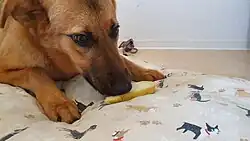 A few studies asked their guardians to report on their dogs' health. Fewer vegetarian or vegan dogs were reported to have been suffering from healthcare problems compared to those on a conventional diet.[32] Specific benefits such as a better coat condition, animal scent, and others are reported as well.[3][33]