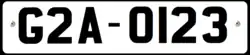 The number plates in this series started with G2A. They had 4 digits. Private vehicle plates were Black on White background. Commercial plates were black on yellow background.