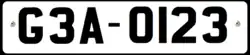 The number plates in this series started with G3A. They had 4 digits. Private vehicle plates were Black on White background. Commercial plates were black on yellow background.