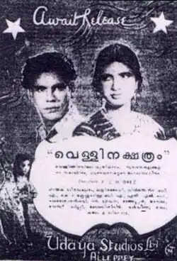 Vellinakshatram (lit.'Silver-star') is a 1949 Indian Malayalam-language drama film written and directed by Felix J. H. Baez, who also handled special effects. It was produced by Kunchacko and K. V. Koshy in their debut production.[1] The film stars Gayaka Peethambaram, P. Lalitha Devi, Alleppey Vincent, K. Ramakrishna Pillai, Kandiyoor Parameshwarankutty, Joseph Mulavana, and P. A. Ambujam. It was the debut film produced at Udaya Studios, the acting debut of Miss Kumari, and debut of K. D. George as film editor. Its music was composed by B. A. Chidambaranath, who debuted with this film.[2][3]