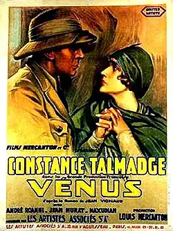 Venus (French:Vénus) is a 1929 French sound drama film directed by Louis Mercanton, and starring Constance Talmadge, André Roanne, and Jean Murat. While the film has no audible dialog, it was released with a synchronized musical score with sound effects using both the sound-on-disc and sound-on-film process. It is based on a story by Jean Vignaud.[1] An English version was distributed by United Artists in the United States.